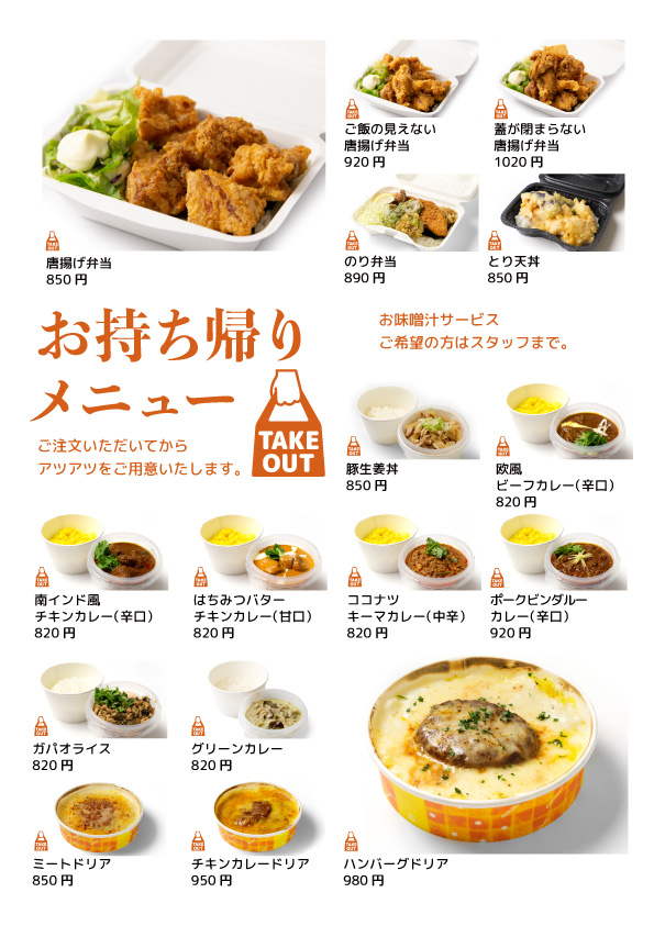 和食・洋食・中華・麺類と毎日食べても飽きないバラエティーに富んだラインナップ。