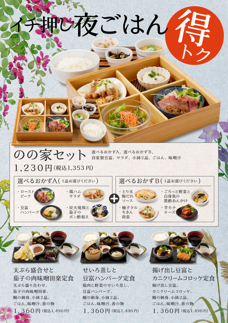 のの家は日本食のお店。和食から洋食、幅広い料理をご用意しております。