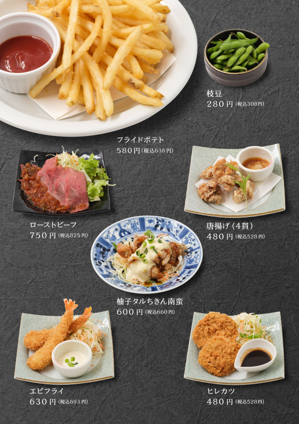 それぞれの好みでジャンルの異なる料理を。お店選びで困ったら当店へ。キッズメニューもご用意しております!おひとりから、ご家族、グループさまざまな場面でぜひ。