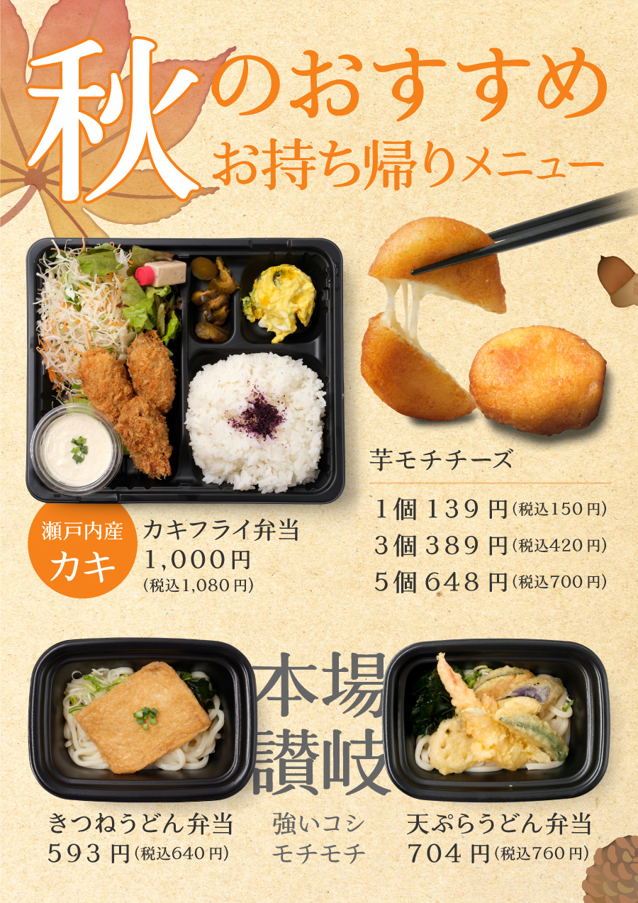 おうちでの食事に加えていただきたいテイクアウトもご用意しております。